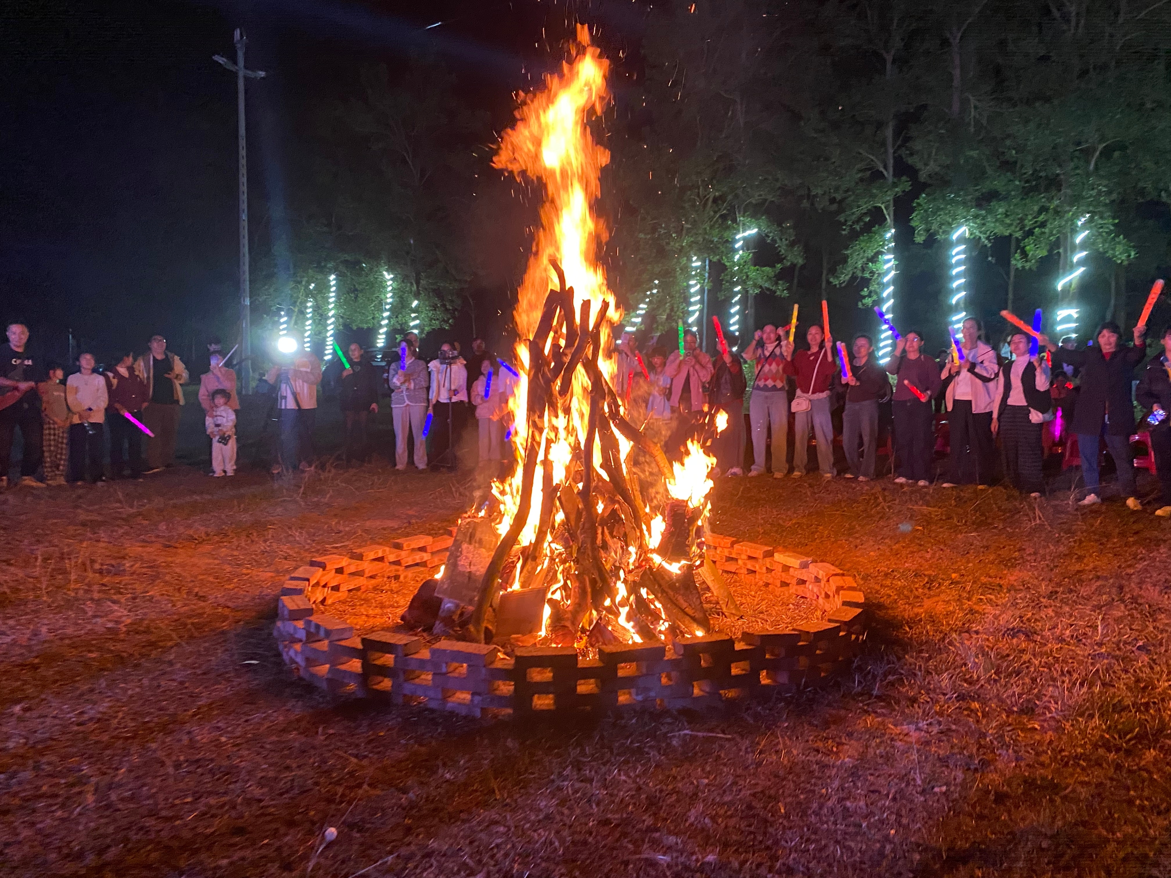 随着篝火燃起,大家手拉手围着篝火载歌载舞,欢声笑语中满是对新年的期盼。